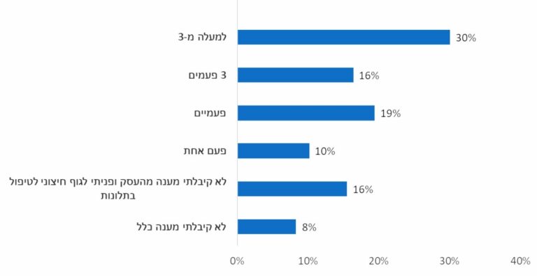 *נציין כי 32% מהתלונות שטופלו באמון הציבור השנה סווגו תחת הבעיה של 'הפרת התחייבות' – כלומר אי עמידה של העסק בהבטחה שנתן לצרכן. תופעה זו מיוחסת בעיקר לתחום התיירות והתעופה עקב כמה פעמים היית בקשר עם העסק עד שהבעיה נפתרה?